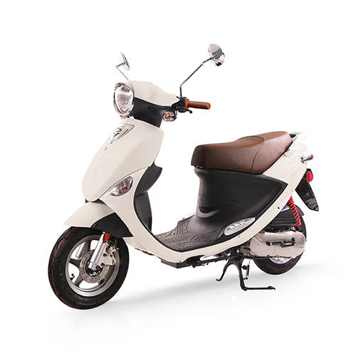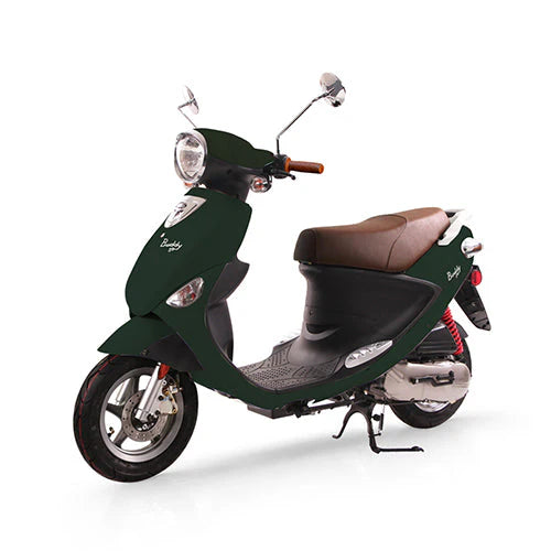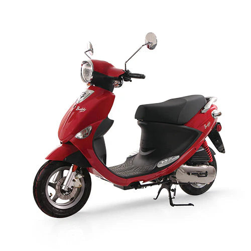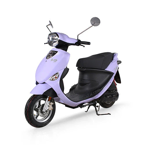 And don’t let the smaller engine fool you – your air-cooled Buddy has a 50cc two-stroke engine, making it perfect for everyday transportation needs, and its automatic transmission makes it that much easier to ride. You’ll appreciate its powerful acceleration, comfortable padded seat, and twin rearview mirrors. Plus, you’ll spend less on gas – it gets as much as 100 mpg!