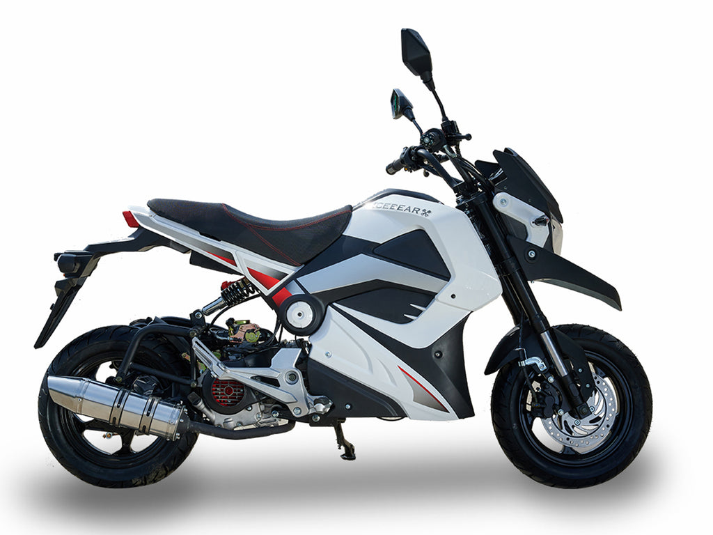| Special features | Include: 50cc GY6, digital dash/speedometer, led turn signals, led tailight, inverted front forks, mono shock rear, front disc rear drum brakes, fully automatic |