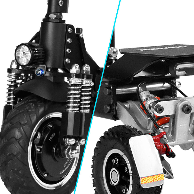 Powered by a 500-watt brushless DC motor (with a peak output of 1000W). the T3 delivers exceptional acceleration and speed. ensuring a smooth ride across diverse terrains. The front and rear suspensions. combined with a lightweight yet durable frame. absorb shocks and vibrations for a comfortable journey.