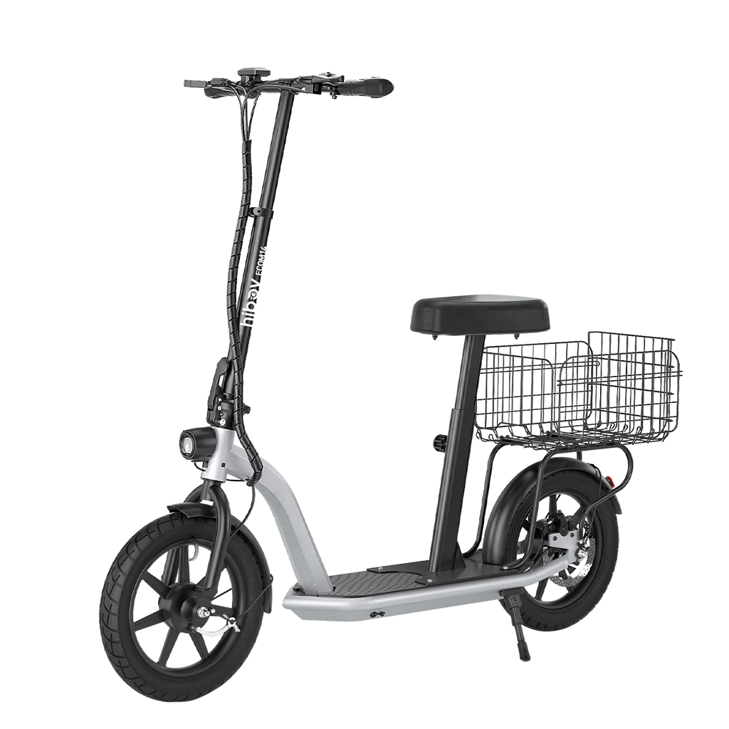 Elevate Your Riding With The Hiboy ECOM Eco Friendly Fat Tire Electric Scooter. This Electric Scooter With Seat Offers Assistance In Traveling Larger Miles With Its Adjustable Seat And Removable Basket To Meet Everyone's Different Needs. It Is Equipped With A Max 450W Motor That Takes The Speed Of This Electric Scooter Up To 22 Mph In A Few Seconds. Its 14-Inch Big And Fat Wheels Can Easily Handle 15-Degree Hills For Inclined Climbing.